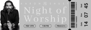 Night of Worship concert featuring Aaron Shust. Will be held on Friday, February 13, 2026 at 7:00pm. Located at First Baptist Church Chandler on 3405 S Arizona Ave.